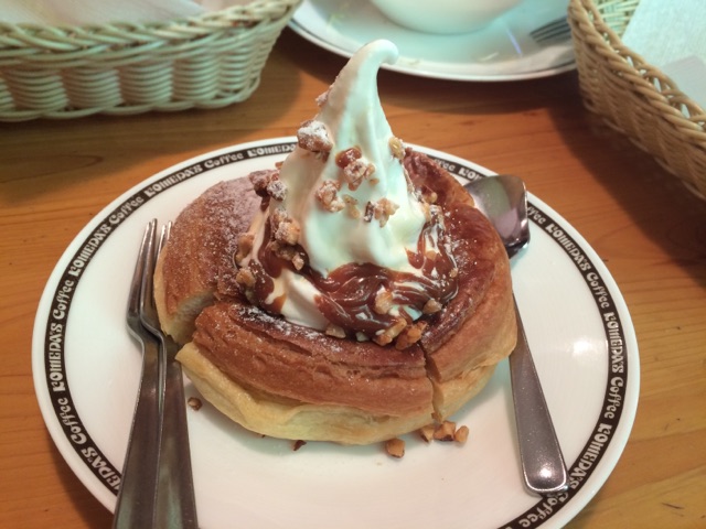 熱々のデニッシュパンと冷たいソフトクリームに、