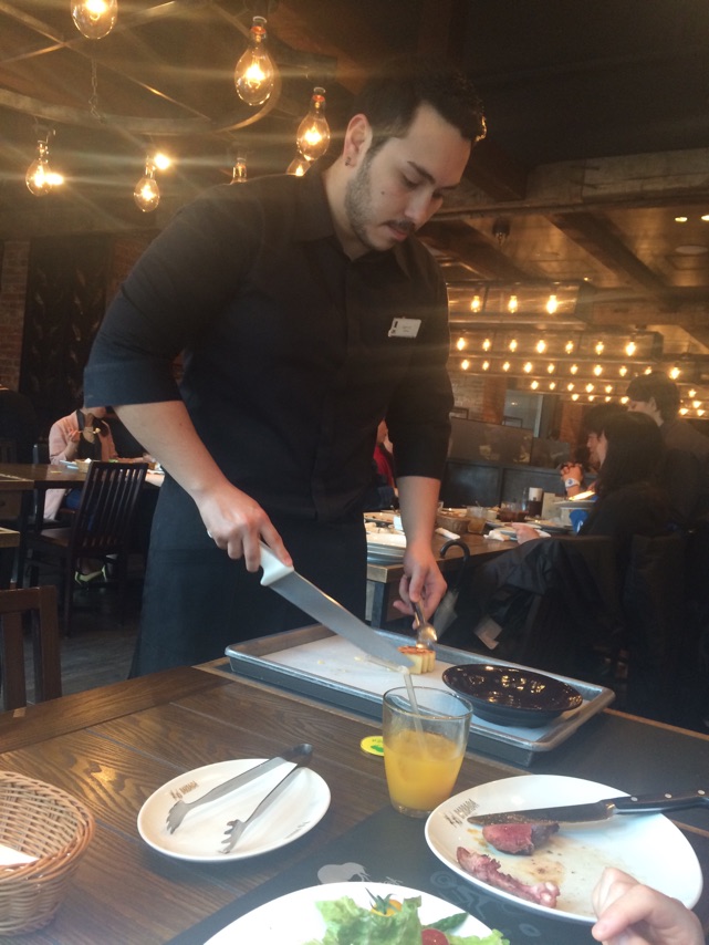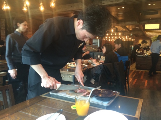 そしてテーブルにお兄さんタチがお肉を持って回ってきてくれます!!
